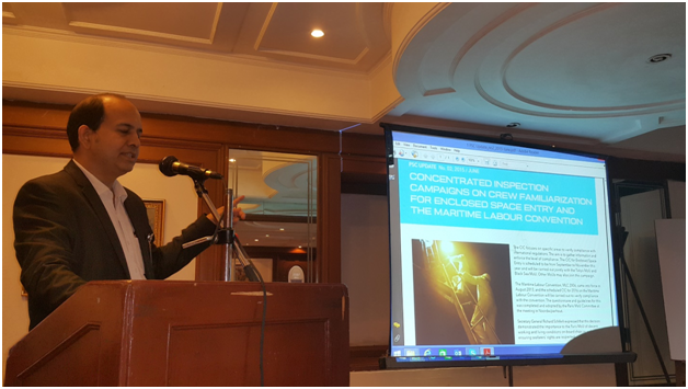 Seafarer Interactive Seminar Capt. Vipin Baijal (President HSSE & Training) from Arena Ship Management Services Pte. Ltd. delivering a lecture on MLC’2006.Seafarer Interactive Seminar @ Hotel Kohinoor Park on 18.08.15Sr.GM Capt. Kuldeep Semwal addressing the participants on ESE Campaign.
